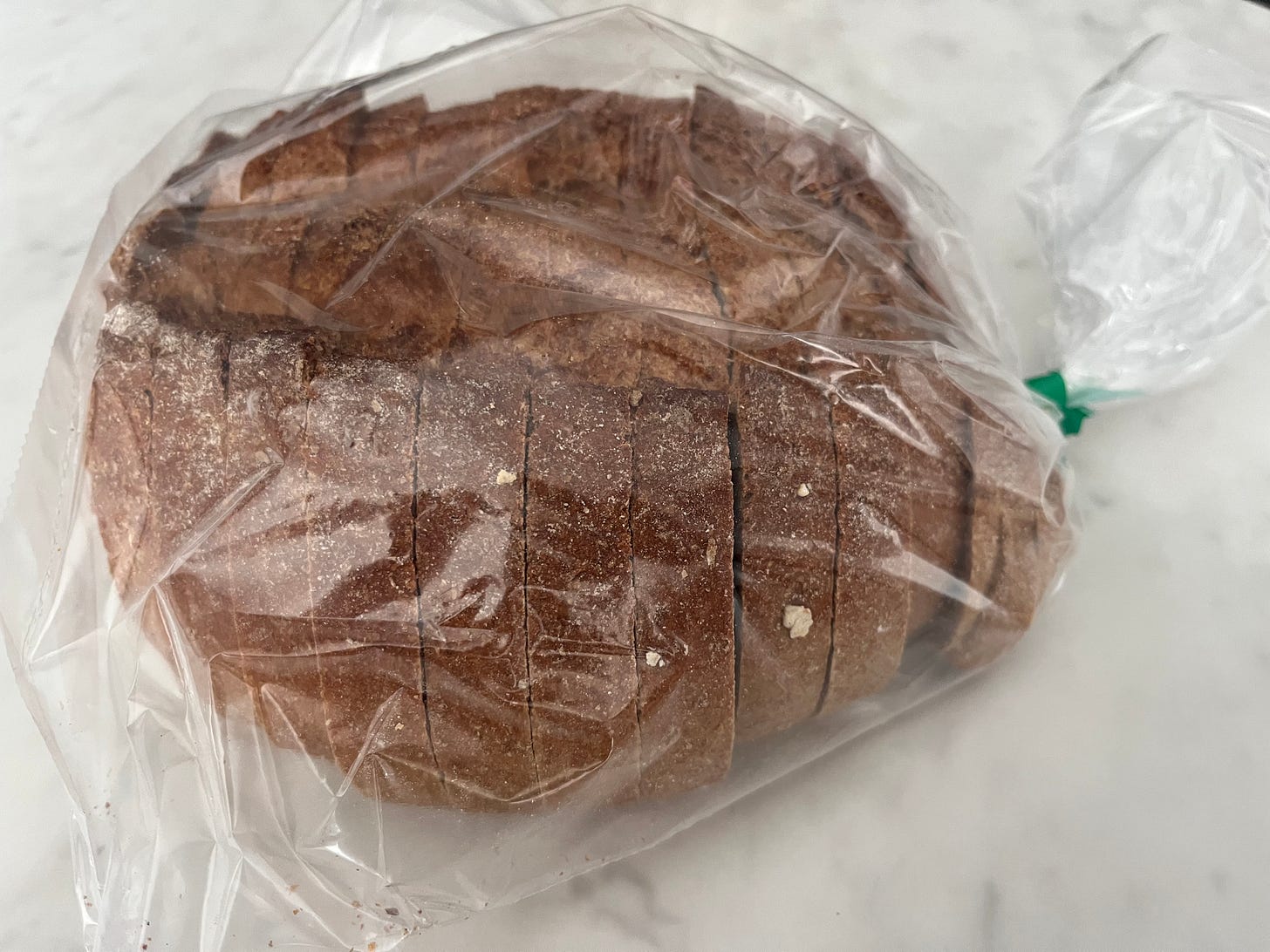 Once inside, the wide C compresses into a tight U. The baker’s shop is narrow, with transparent glass displaying turmeric corn, wheat spirulina, chia spelt, multigrain wheat, apple walnut and plain white loaves to our left. The bakery display bears fingerprints at different heights in the glass. Many people are speaking at once - to each other, to their children, or to the two women behind the counter. The rhythm of the voices is fast and jovial.